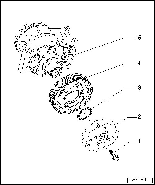 • Removing and installing, refer to => [ Compressor Pulley, Version 1 ] Service and Repair