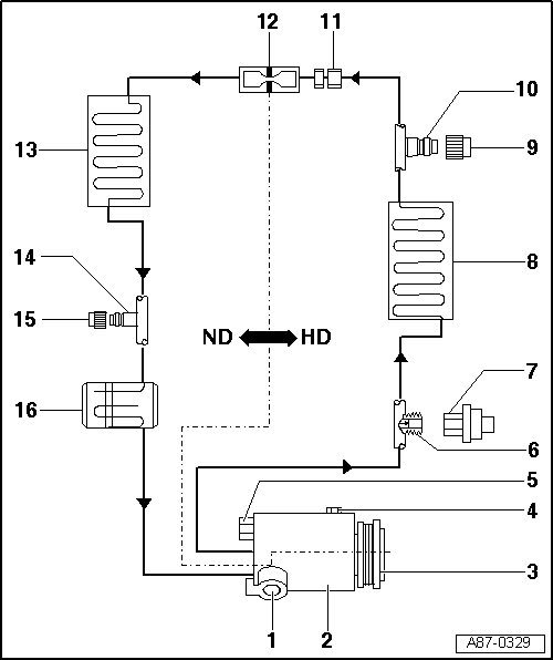 7 High Pressure Sensor (G65) 1) => Servicing Refrigerant Circuit