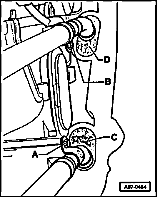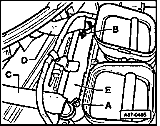 - Detach coolant pipes -C- and -D- from heat exchanger -E-.
