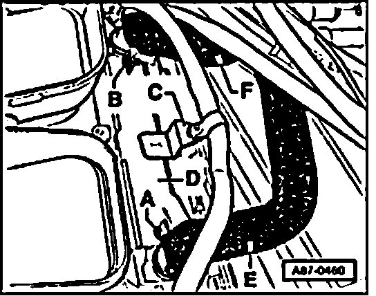 - Before installing glove compartment and plenum chamber cover, check position of grommets -C- and -D- in coolant pipe penetration to plenum chamber.