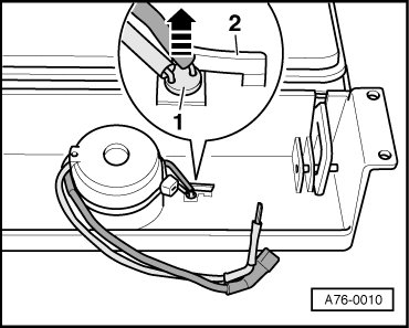 - Carefully press securing lever - 2 - to the side and press light emitting diode - 1 - for operation indicator out of panel to the rear - arrow -.