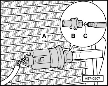 - Replace O-ring-seal - C - (10.8 mm, 1.8 mm). Refer to=> [ Refrigerant Circuit O-Ring Seals ] Refrigerant Circuit O-Ring Seals.