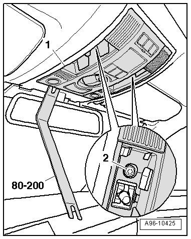 - Pry the front interior lamp - 1 - out using the pry lever (80 - 200) as shown in the illustration.