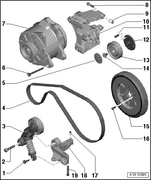 • Removing and installing, refer to => [ Ribbed Belt ] Ribbed Belt