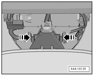 - Press the clamps - arrows -, pull the lens screen out of the bracket and remove it toward the rear.