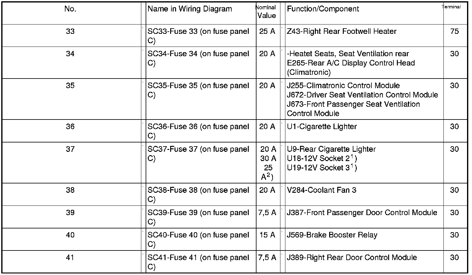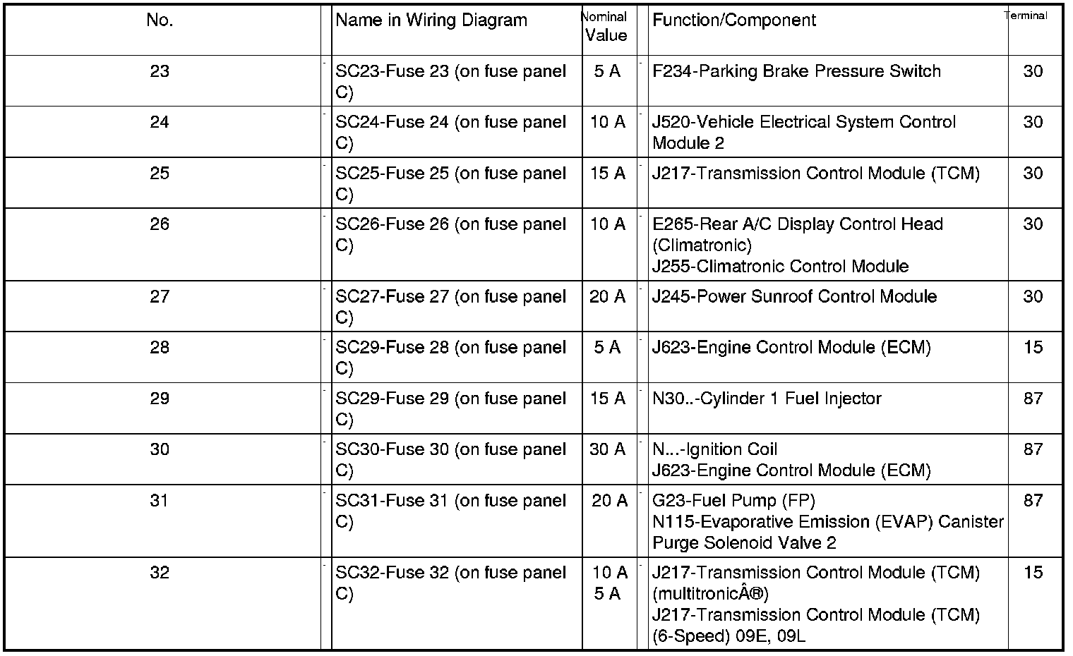 Mounting Position of Fuses (SC)