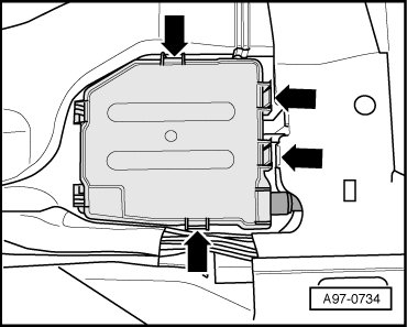 - Release cover for driver's side electronics box - arrows - and fold to side.