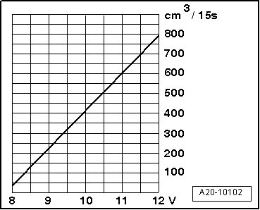 - Compare quantity of fuel delivered with minimum delivery rate in diagram (cm3/15s).