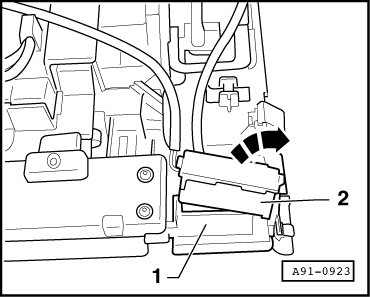 - Unclip harness connector - 2 - from retainer - 1 -.