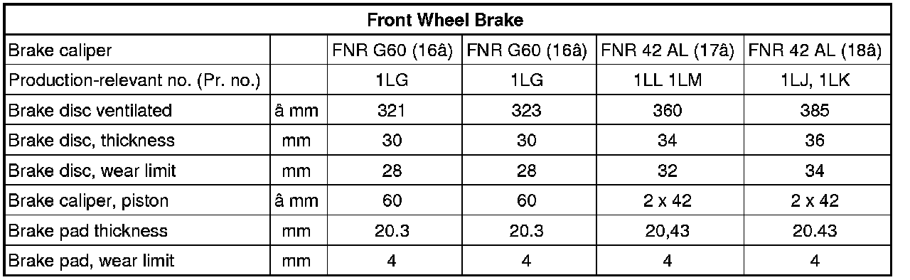 • Brake discs with friction surfaces that have worn through should be replaced.