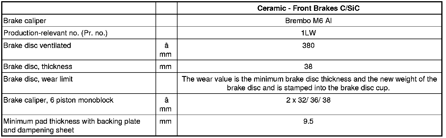 • Hairline cracks on the friction surface on ceramic brakes occur during the manufacturing process and can be found on new brakes in different stampings. Hairline cracks on the friction surfaces are not a reason to exchange the ceramic brake discs.
