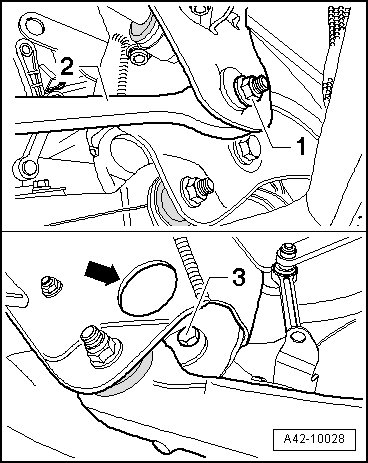 - Remove the nut - 1 - from the tie rod - 2 - to subframe connection.