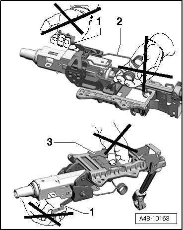 • Incorrect handling of the steering column may cause damage to steering column and therefore lead to a safety risk.