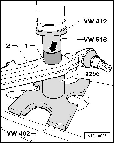 - Press the bushing - 1 - into the track control arm - 2 -.