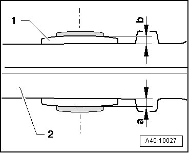 - If dimensions - a - and - b - are different, press the bushing - 1 - in more.