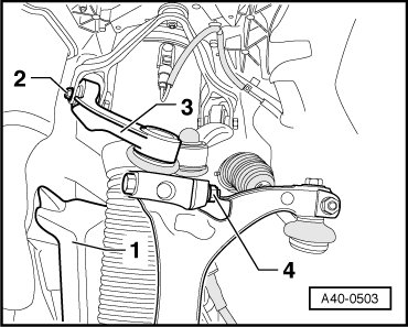 - Remove the nut - 4 - and bolt and remove the control arm - 3 - upward.