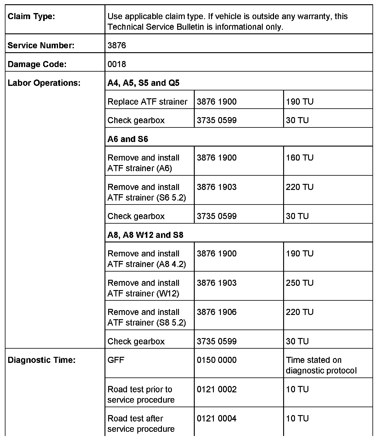 7. If there are complaints of gear shift quality after replacing the ATF filter, clear the adaptations in the test plan and then perform the GFF or Guided Functions Adaptation Drive.