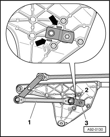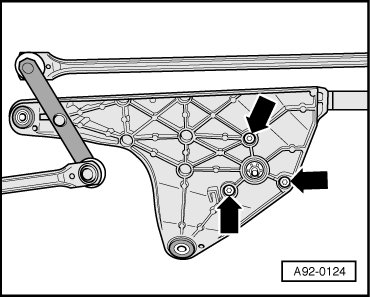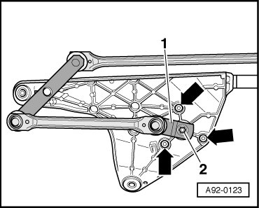 - Secure the new wiper motor without the crank on the wiper frame - arrows -.