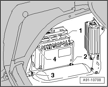 • If control module is replaced, select "Replacement" function for appropriate control module in "Guided Fault-Finding" routine. Use the Vehicle Diagnosis, Testing and Information System (VAS 5051) to do so.