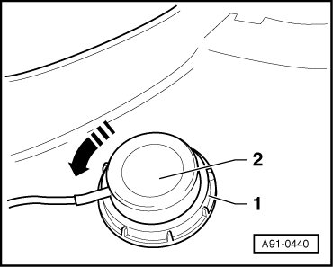 - Twist open the mount - 1 - on outside on speaker (telephone/navigator) (R39) - 2 - in - direction of arrow - and remove speaker (telephone/navigator) - 2 - from trim toward front.