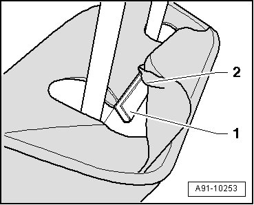- Remove bolt - arrow - (3 Nm) on inside of headrest.