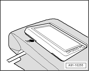 - Carefully pry multimedia display unit 1 out of headrest - arrow - using a suitable tool.