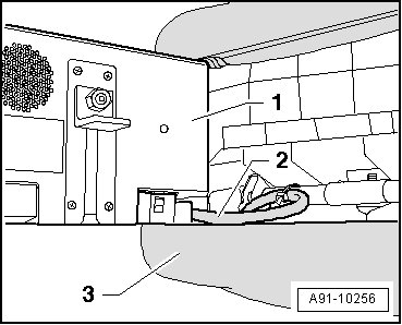 - Swivel multimedia display unit 1 - 1 - out of headrest - 3 - and disconnect harness connector - 2 -.
