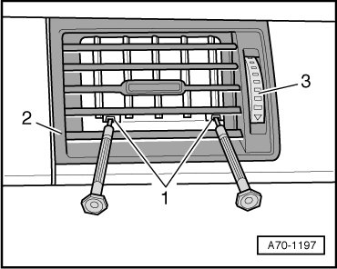 - Insert one watchmaker's screwdriver each - 1 - into air vent retaining clamps above the lower ventilation fin - 2 -.