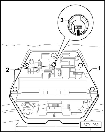 - Carefully press tabs - 3 - upward in -direction of arrow- using a flat screwdriver.