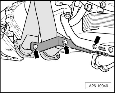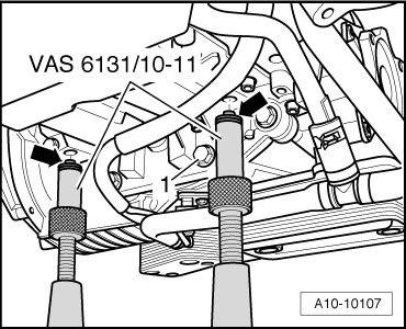 - Position support elements from (VAS 6131/10) at right on engine/transmission as shown in illustration.