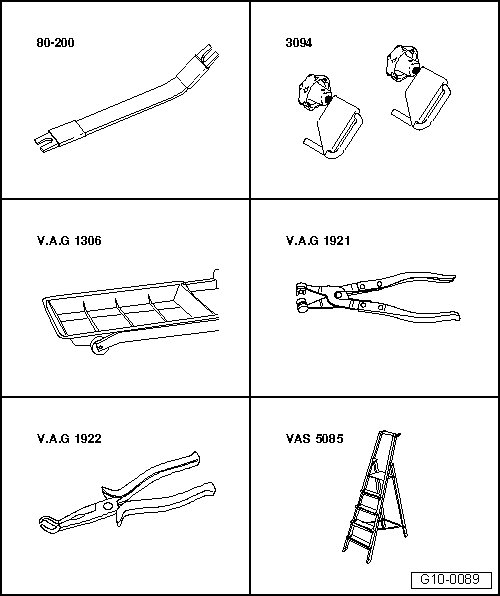 • Drip tray (V.A.G 1306) or drip tray for workshop crane (VAS 6208)