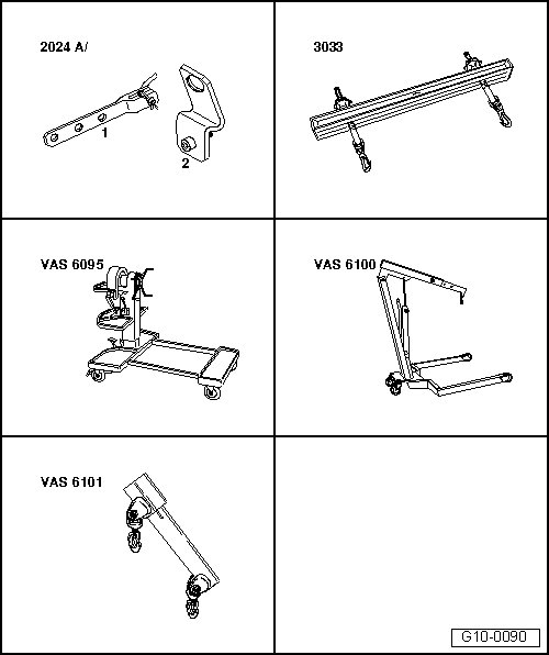 • Engine and transmission holder (VAS 6095) with bracket for W12 engine (VAS 6095/1-1)