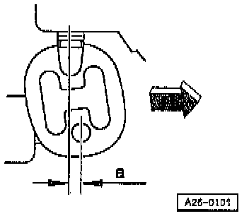 - Push rear muffler forward - arrow - until the retaining loops are adjusted to the following pretensions.