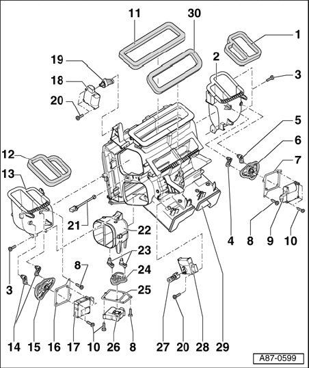 - On vehicles with Rear A/C Control Head (Climatronic) E265, flaps are installed in rear air guides and connection to rear cold-air duct is open.