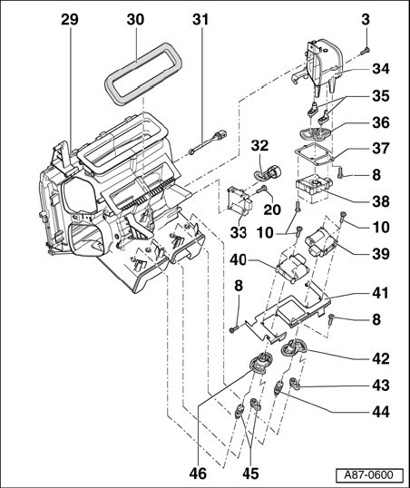- Lever at flap is marked "834" (remains at warm-air flap in air distributor housing)