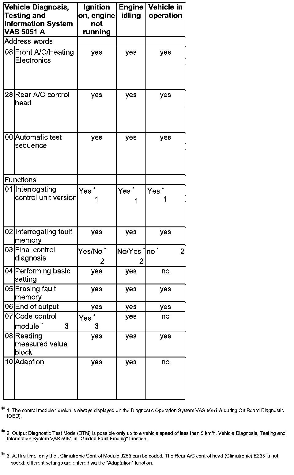 3. At this time, only the, Climatronic Control Module J255 can be coded. The Rear A/C control head (Climatronic) E265 is not coded; different settings are entered via the "Adaptation" function.
