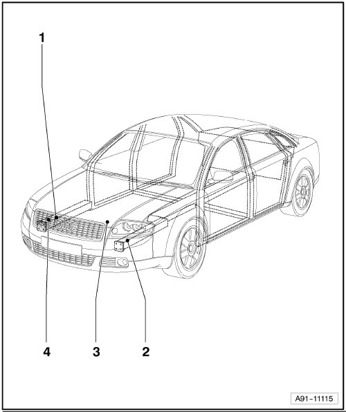 • in engine compartment front right, on lock member