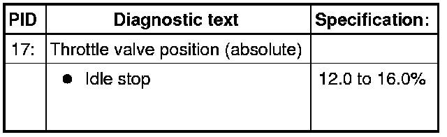 - Check specified value of throttle valve position (absolute) at idle stop: