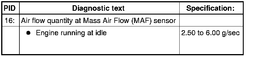 - Check specified value of air flow quantity at Mass Air Flow Sensor at idle: