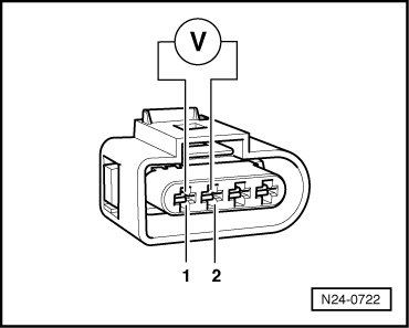 - Check voltage supply at 4-pin connector terminal 1 to Motronic Engine Control Module (ECM) Power Supply Relay 2 (J670) according to wiring diagram: