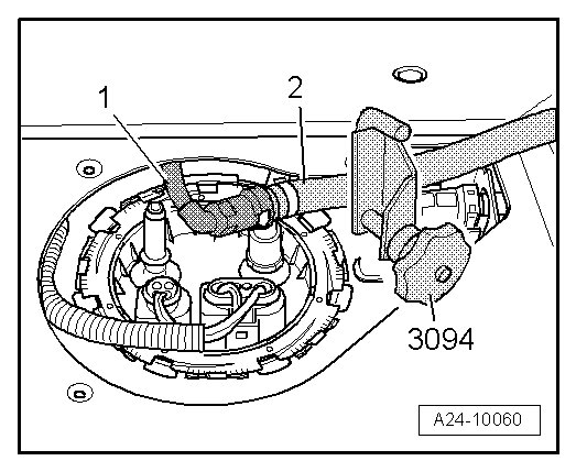 Hose Clamps Up To 25 mm Dia. (3094) must not be placed directly on fuel line, otherwise it may be damaged. It may only be disconnected at adapter ( V.A.G. 1318/26)!