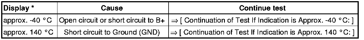 * If a temperature is indicated that is below the sensor's ambient temperature, first check sensor wires for contact resistance. Note that while the vehicle is standing still the sensor might warm up due to radiant heat.