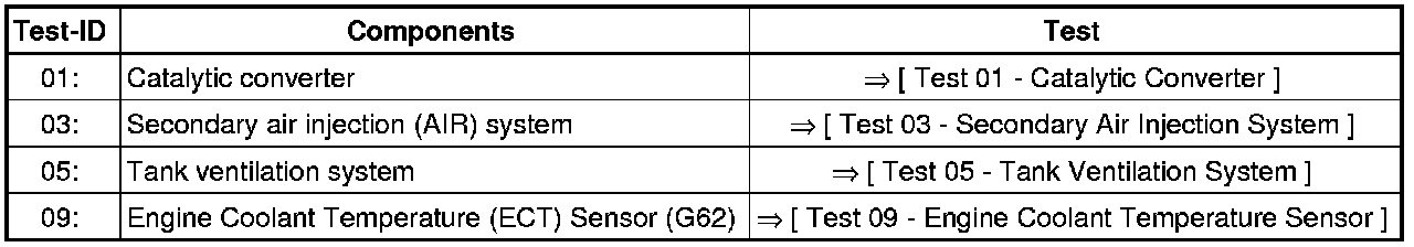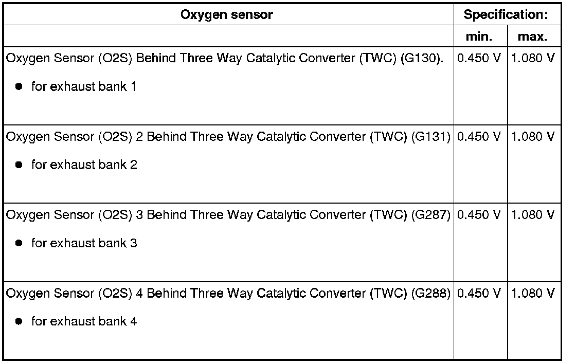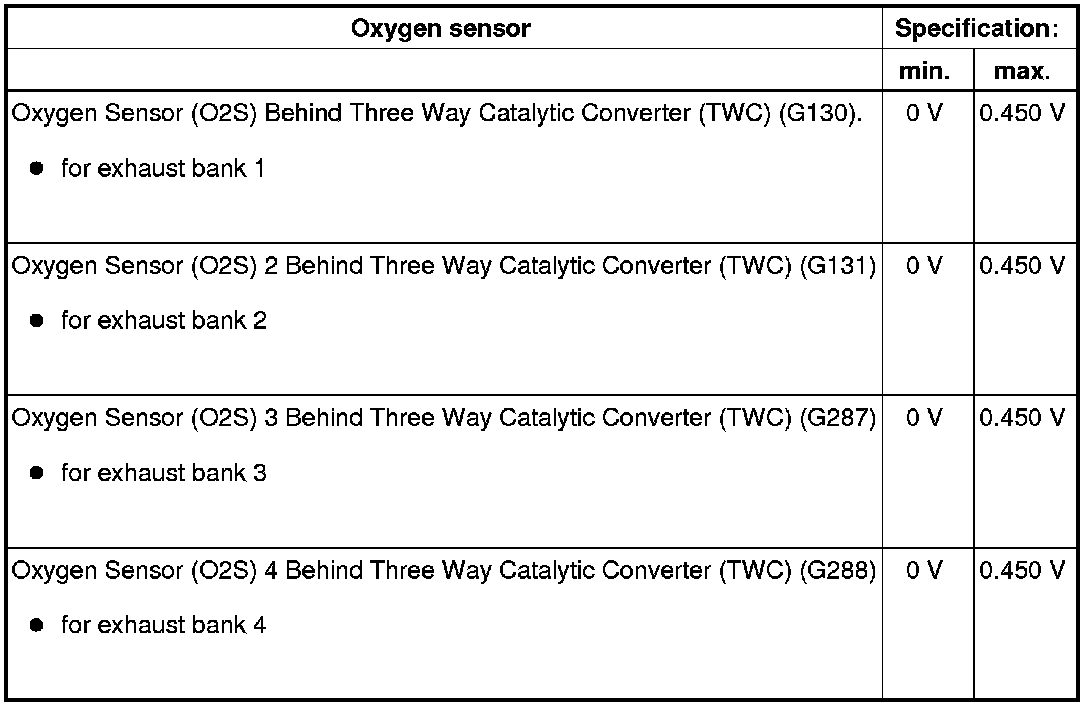 - Oxygen sensor heating for sensor behind catalytic converter, checking => [ Oxygen Sensor Heaters After Catalytic Converter, Checking ] Component Tests (VAG Code Tests).