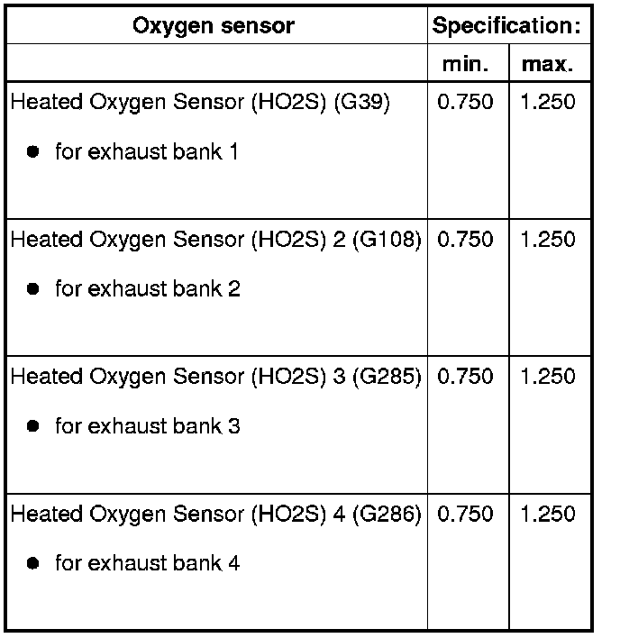 - Heated Oxygen Sensor (HO2S) and oxygen sensor control after catalytic converter, checking => [ Oxygen Sensors and Oxygen Sensor Regulation after Catalytic Converter, Checking ] Component Tests (VAG Code Tests).