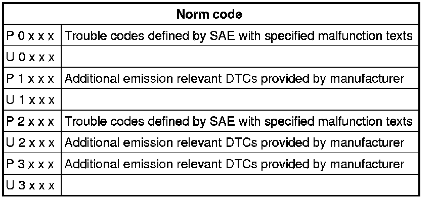 The DTC always consists of a 5-digit alpha-numeric value with the following meaning: