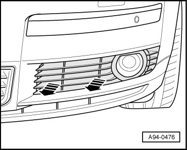 - Pull left air intake grille out of the bumper - arrows -.