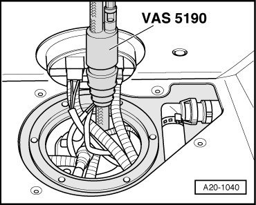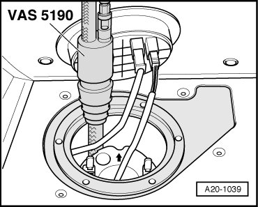 - Extract the fuel in the left half of the tank through the opening using the Fuel Extracting Device (VAS 5190).