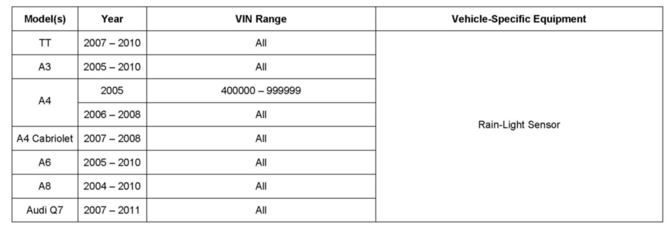 3. If you determine that the rain/light sensor needs to be replaced, use the J519 test plan for replacing light/rain sensor G397 to ensure correct coding and proper documentation after installation.