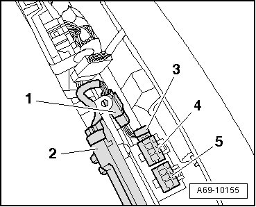 - Carefully pull retaining plate - 4 - in direction of arrow and carefully lift retaining plate. "Retaining plate must not be warped" Guide the passenger occupant detection system control module (J706) - 5 - through the narrow opening, following the cable routing.