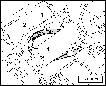 - Position the pressure hose - 1 - according to marking - 2 - in retainer - 3 -.